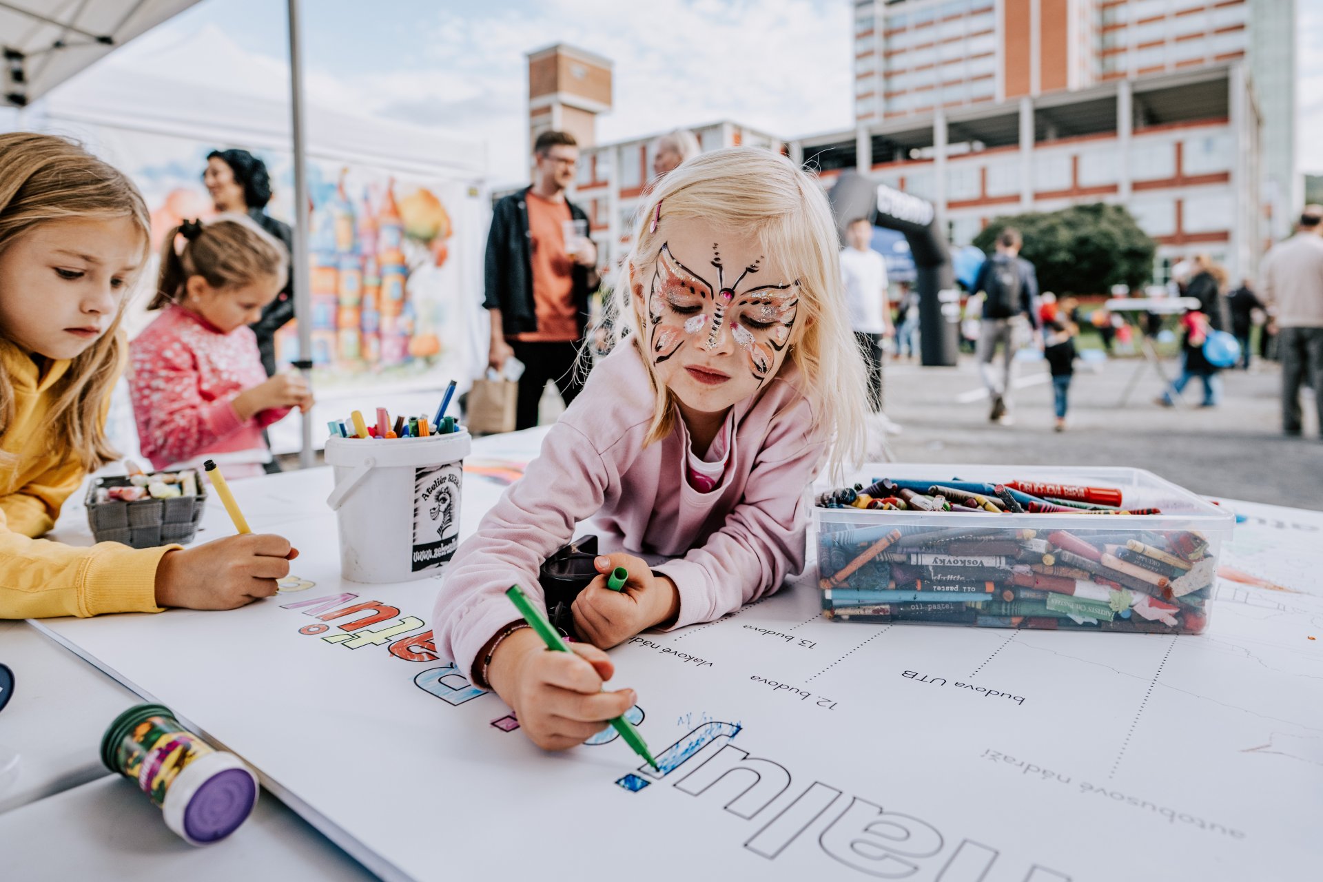 Rodiny si užily dětský koutek, kde nechybělo malování na obličej, focení u pohádkové fotostěny a vybarvování velkoformátové skici Baťova areálu. Velkým lákadlem se stala také speciální edice buttonů Baťova areálu, které okamžitě končily na batozích, taškách či mikinách a vyvolaly sběratelskou vášeň. Tohle byla jen první vlna – už teď připravujeme další limitované edice, které ponesou svůj příběh a stanou se symbolem areálu.